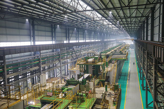 150m/min彩涂高端自動化生產(chǎn)線四條,涂輥壓力檢測,適時調(diào)整、底涂和面涂兩輥式涂頭可選用兩涂兩烘工藝;底漆和面漆濕膜厚度在線檢測、面涂采用“U”型雙涂頭機(jī);涂輥配置在線刮刀、涂料配置油漆恒溫系統(tǒng)。配置保護(hù)膜覆膜機(jī)、配置在線頻閃儀檢查臺;出口段自動分卷、自動穿帶、自動卷取和自動卸卷功能;卷取機(jī)配置EPC系統(tǒng),實(shí)現(xiàn)成品鋼卷的齊邊卷取;卷取機(jī)配置助卷器和無縫卷筒,防止成品卷內(nèi)圈壓痕產(chǎn)生。